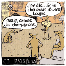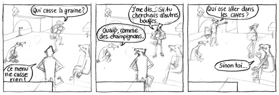 Quelques rats sous terre se révoltent, mais contre quoi déjà? Projet 2016. Scénario: Jacques Méry; dessin: Anne Renaud.