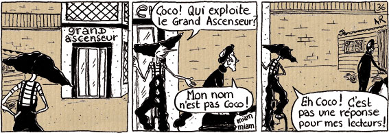 Tabi et Soccoli sont deux petites mains du Cirque Peton, étrangement immobilisé sur la grande place d’une petite ville du sud. Tabi a des allures de clown blanc, alors que Soccoli, primesautière, flotte dans sa salopette d’Auguste. Ils ont l’air d’être en représentation permanente. Alors cirque ou fosse ? Espace de liberté ou de confinement ? Projet 2014. Scénario: Jacques Méry; dessin: Anne Renaud. Sur ce site également: Construire les roulottes du Cirque Peton et .... les Ronds!